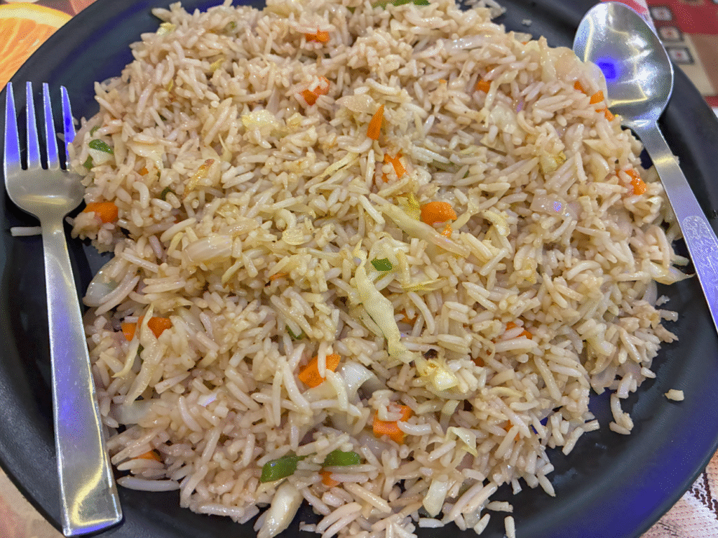 ベジタブルフライドライス。ノースパイシーで頼んだので美味しくいただけました。