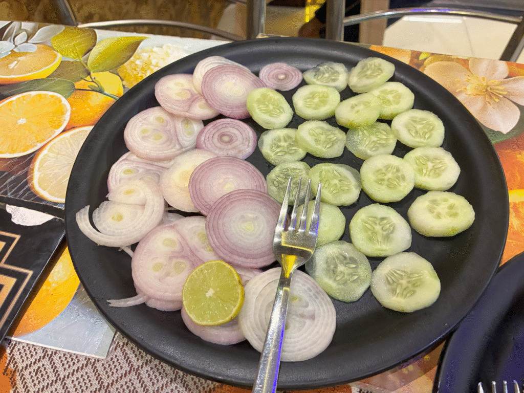 キュウリ&オニオンのサラダ。みずみずしく美味い。