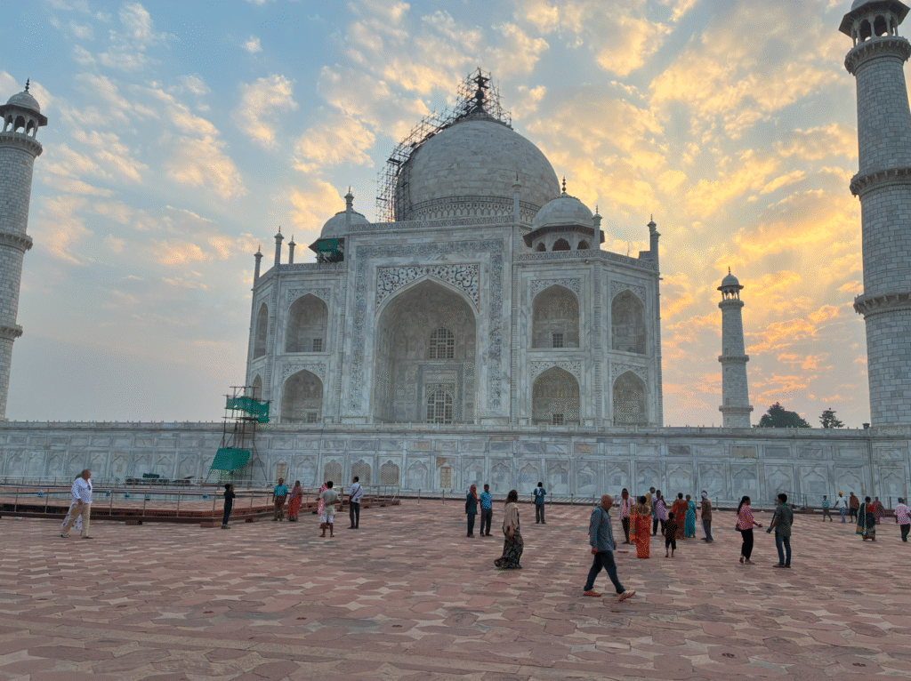 タージマハルへ行く方は手ぶら(カバンなど無し)推奨です。セキュリティーが厳しい上、セキュリティーチェック後のバッグの受け取りが大混雑で、紛失も発生してそう。パスポートなど貴重品を入れてたので、不安になりました。が、無事確保。