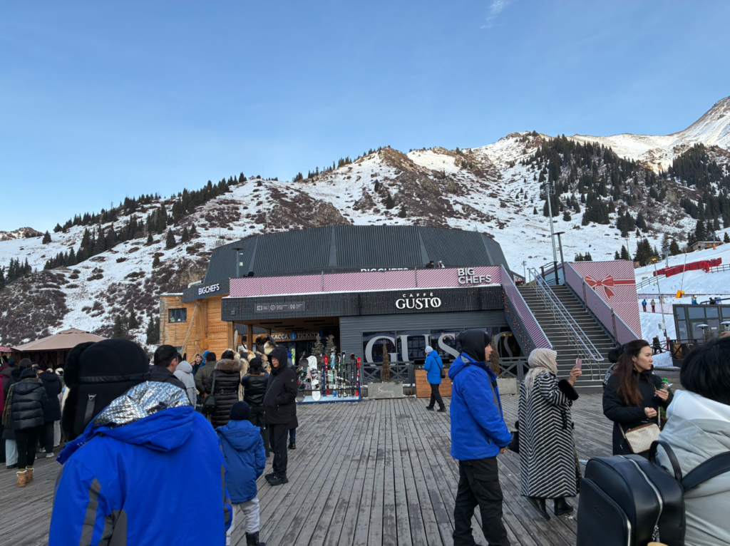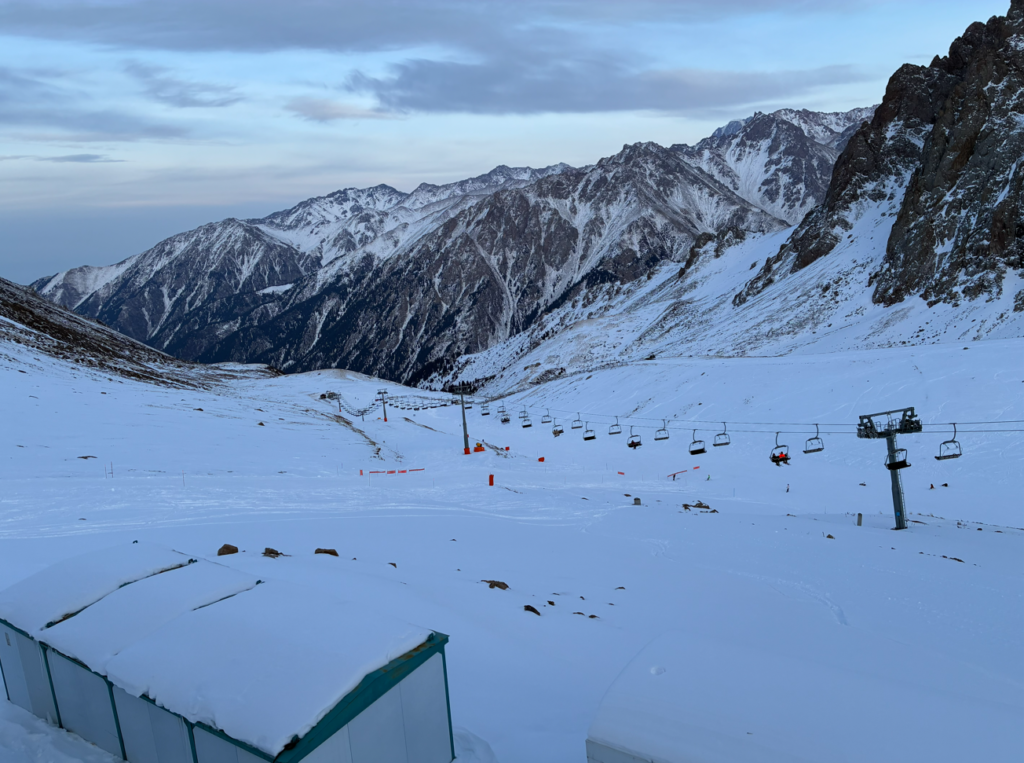 ここから上はケーブルカーは無くリフトのみ。寒いのでここで満足、終点とします。標高3,000m超で空気が薄く、天山山脈の稜線が綺麗です。