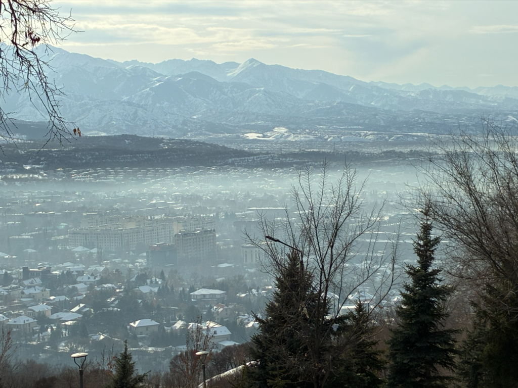 市街地と山脈の組み合わせ。これがカザフスタンらしいお気に入りショット。