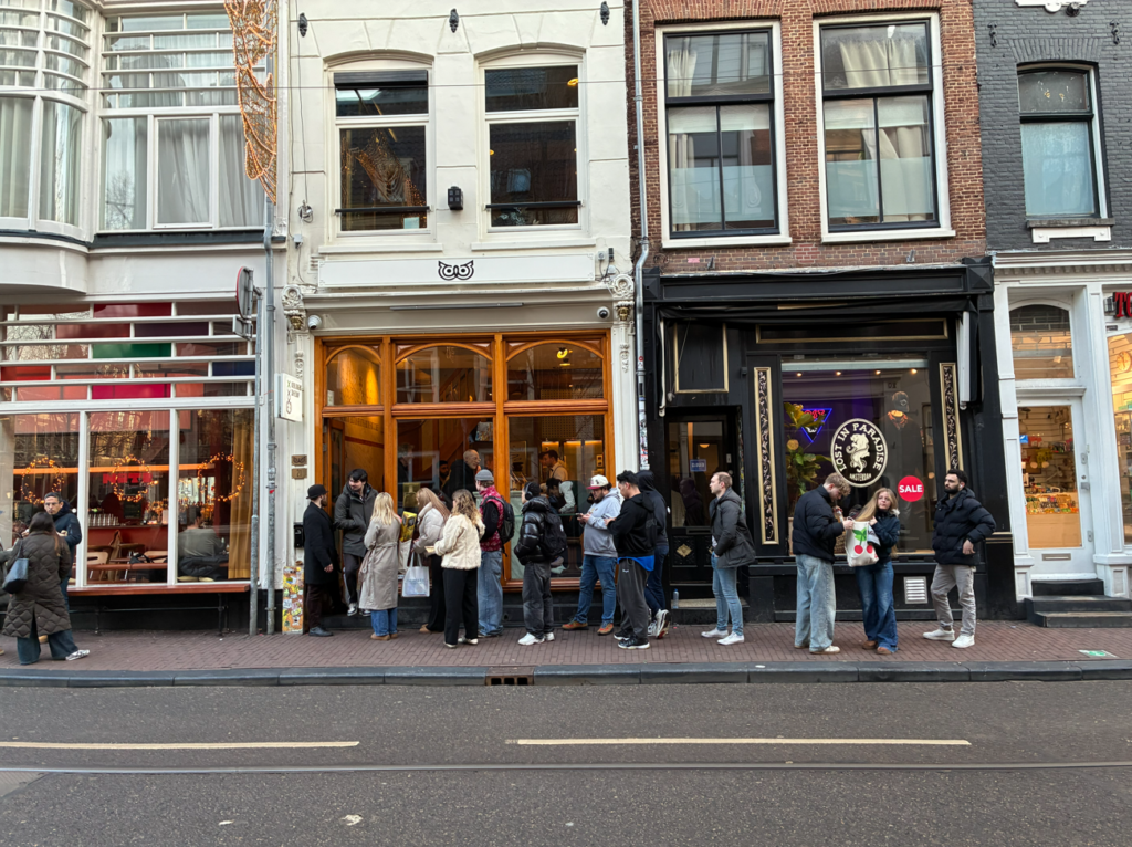 アムステルダムでたぶん最も有名なお店Boerejongens。平日の夕方ですが行列が出来てました。1階で買って2階で試すことが出来るのですが、満席で待ちが出来てました。。。困ったね。