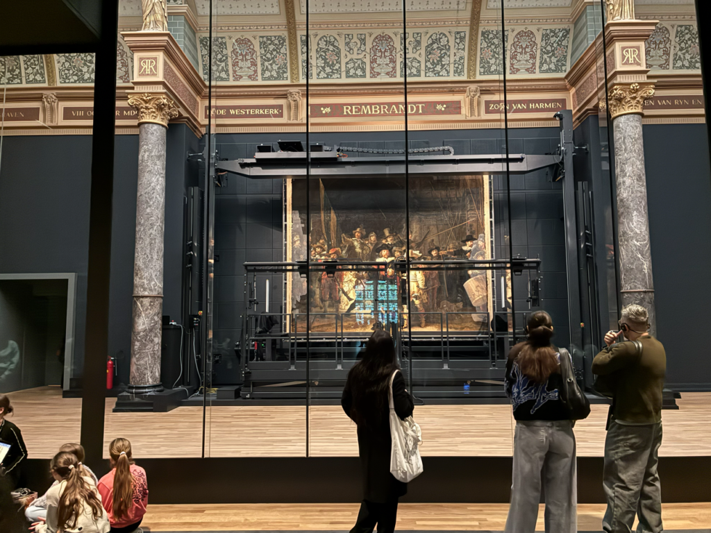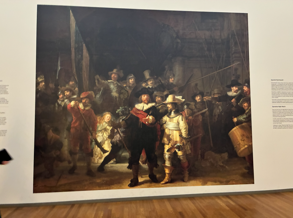 この美術館、最大の目玉はレンブラントの《夜警》(The Night Watch)。Operation Night Watch(夜警作戦)と呼ばれる、前例のない公開修復中で、間近で見学は出来ませんが、何やら物々しい修復作業の様子が見て取れます。これはこれでレアらしいので良し。
