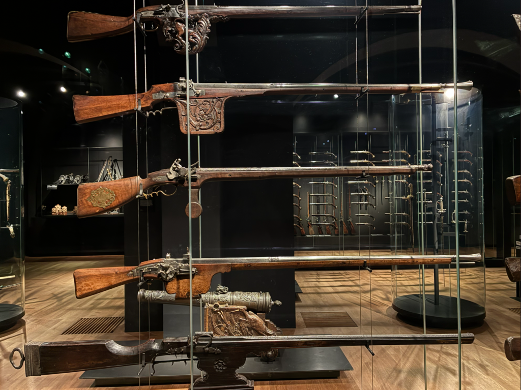 銃剣の展示もあります。日本の火縄銃とは違い装飾などが無駄に凝っている点など面白い。貴族用でしょうか。豪華な感じ。