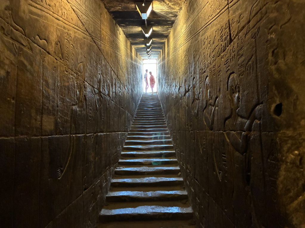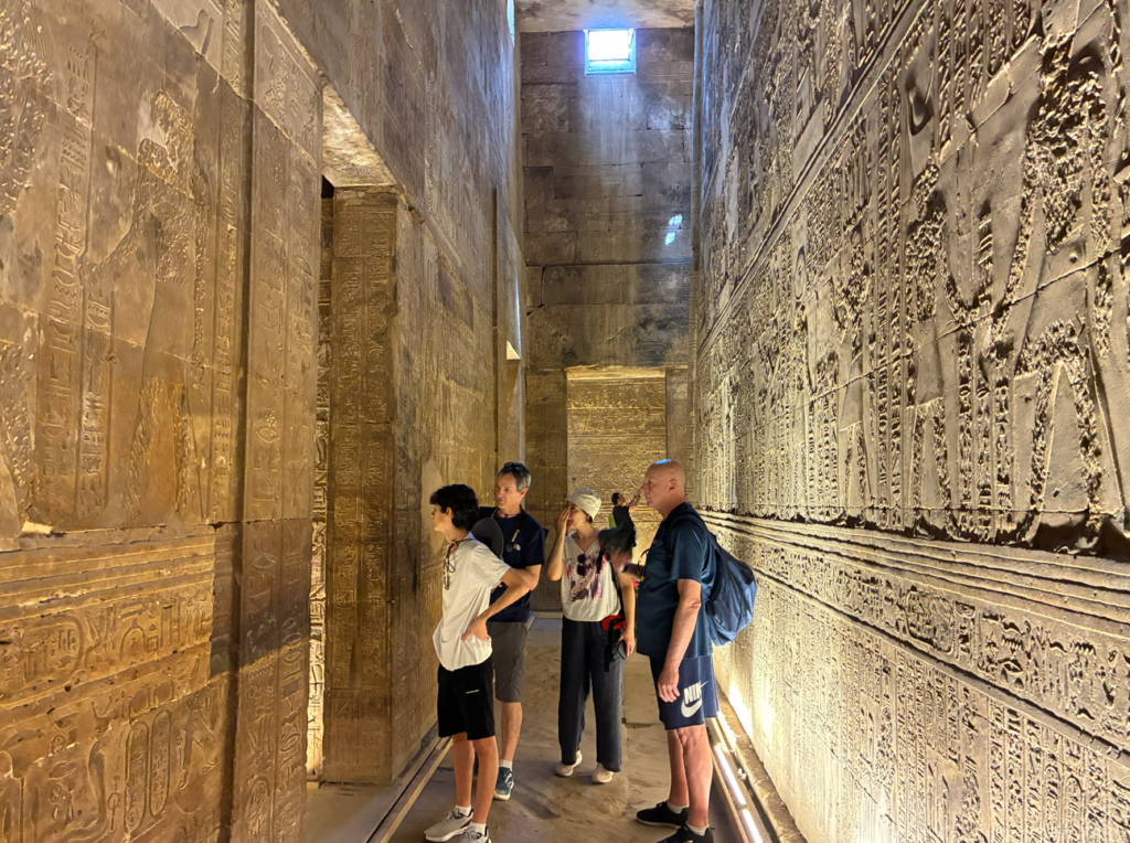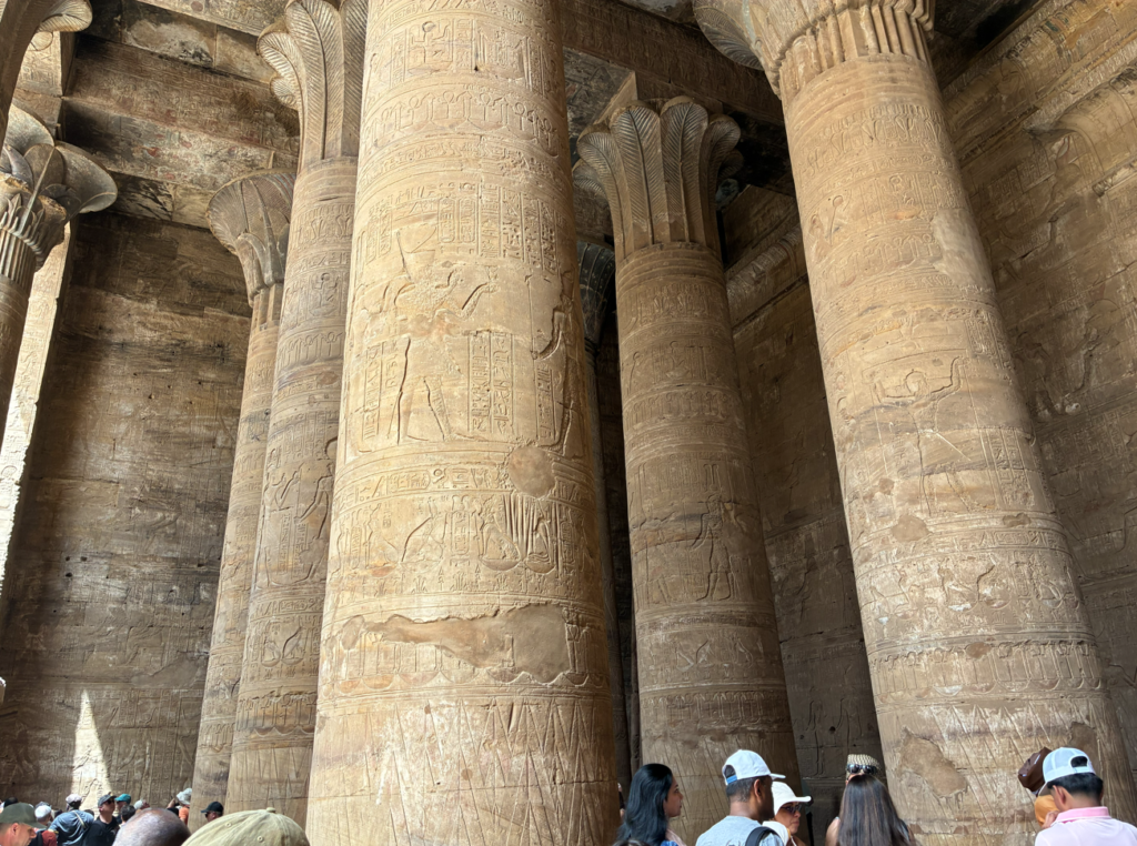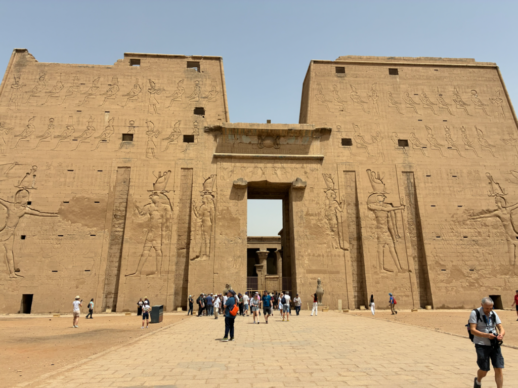 古代エジプトでもかなり新しめ(プトレマイオス朝)の神殿で、壊れてなくて超キレイに残ってるから人気なんだとか。と言っても紀元前のお話なんで、2000年以上前。