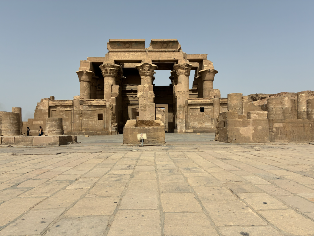 コム・オンボ神殿は、ワニの神セベクとハヤブサの神ホルスが共存する珍しい“二重神殿”。左右で完全に分かれてるのが特徴。