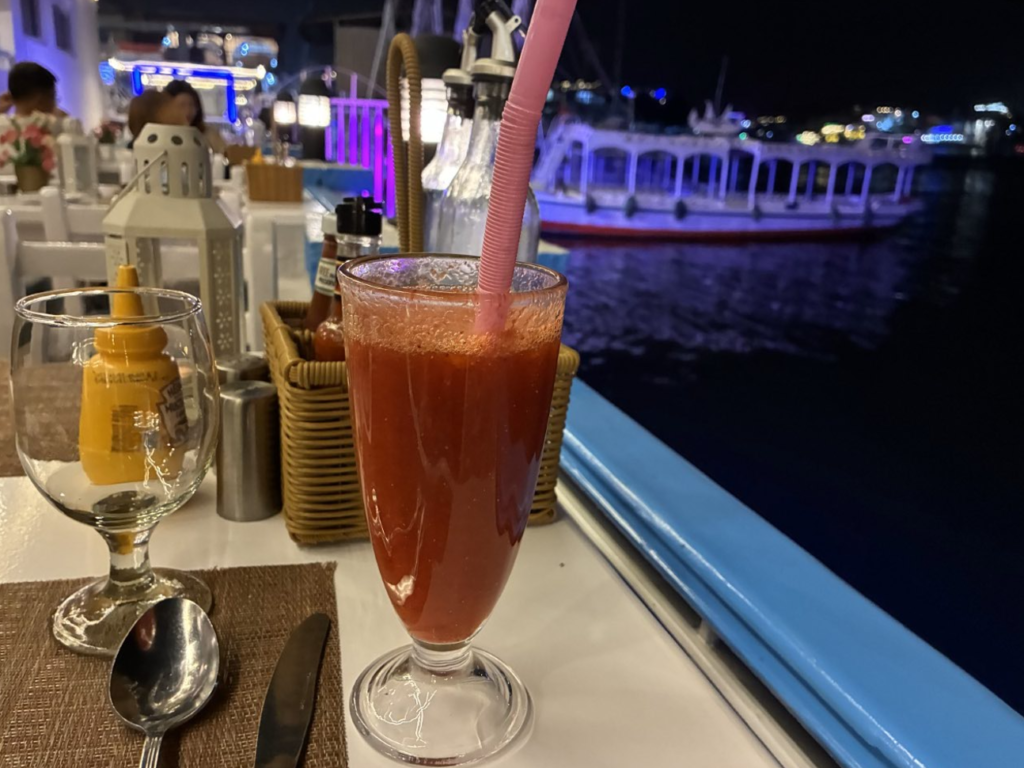 ディナーはSalah El Din Restaurant。Googleマップ☆4.0。ストロベリージュース。とてもジューシー。