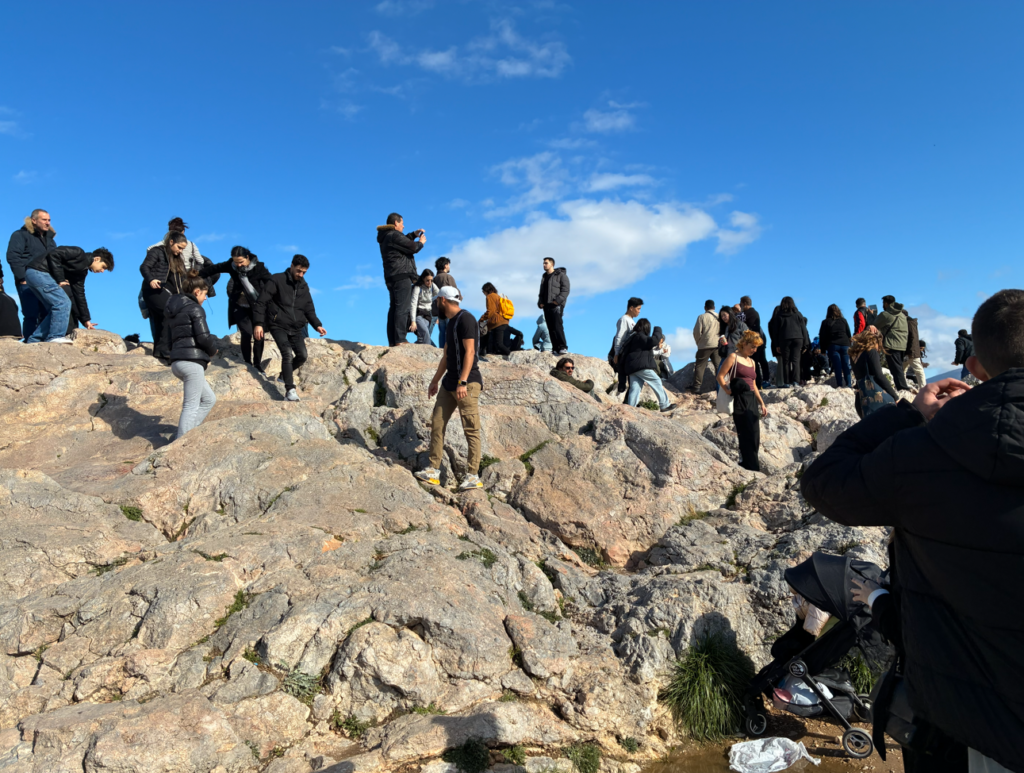 この丘には、同じような見学者が大勢。ちなみに、ここは足元の石がめちゃ滑る(大理石)ので、けっこう怖い。サンダルなんかで来た日にはエライ目にあいそう。