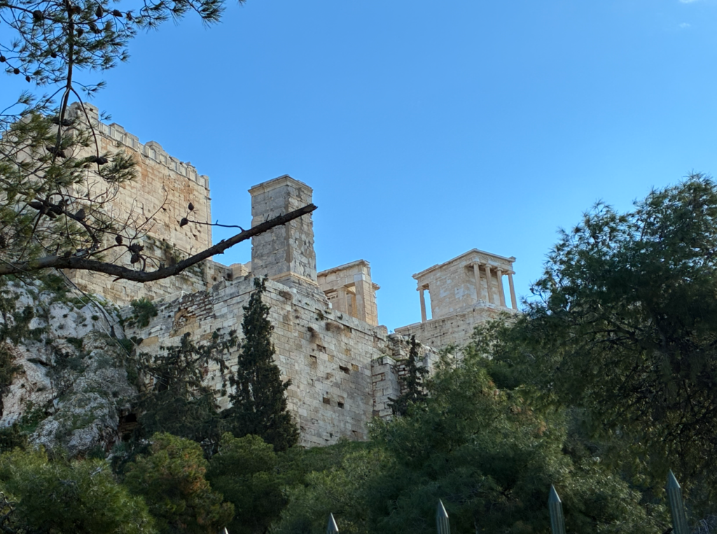 諦めきれず今日もアクロポリスへ。もちろん、昨日同様に門は閉じており入ることは叶いません。下から眺めます。