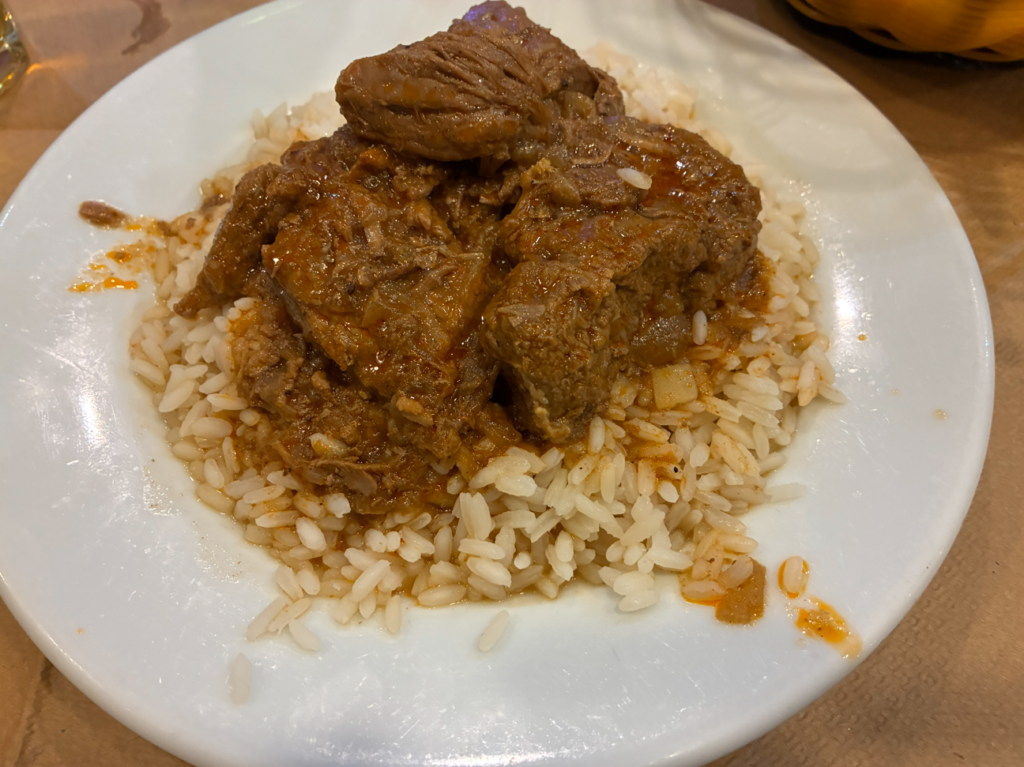 ギリシャの国民的ビールALFA Beer(アルファ・ビール)&ギリシャの定番“家庭の味”ビーフ・コッキニスト(Beef Kokkinisto)。めっちゃギリシャしてます(笑)。大味な感じですが、よくビーフは煮込まれており、とても美味しい。ライスも久しぶりなのでグッド。