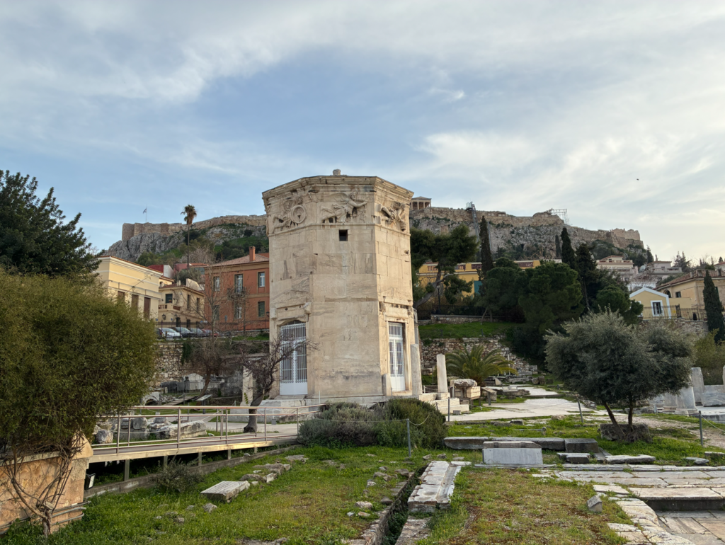 そして、Googleマップで見つけた観光名所の風の塔(Tower of the Winds)。以前にインドで訪れた風の宮殿(ハワー・マハル)は、953もの窓が並ぶことから風の宮殿でしたが、ここは、世界最古の気象観測建築だとか。レリーフとかも凝ってるのがギリシャって感じでイイ。
