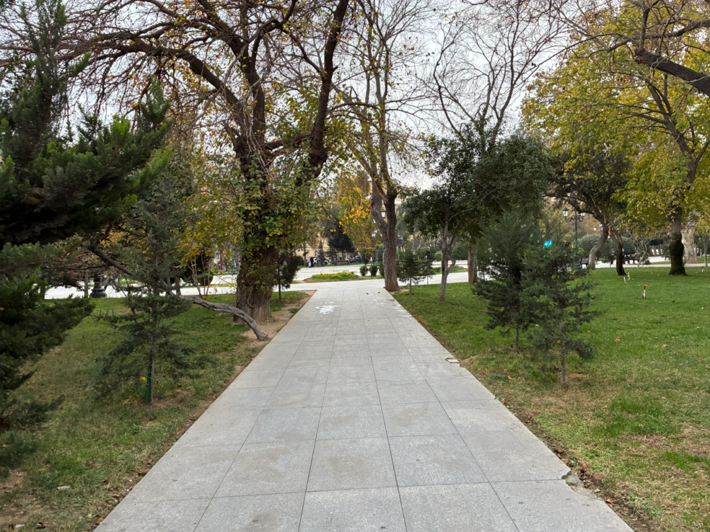 早速ホテルに荷物を置いてバクーの街歩きをしていきます。大きめの緑ある公園が街中に多くあり、とても歩きやすい街の印象。少し寒いですが、公園でサッカー遊びしている若い人やベンチで読書している人など憩いの場。