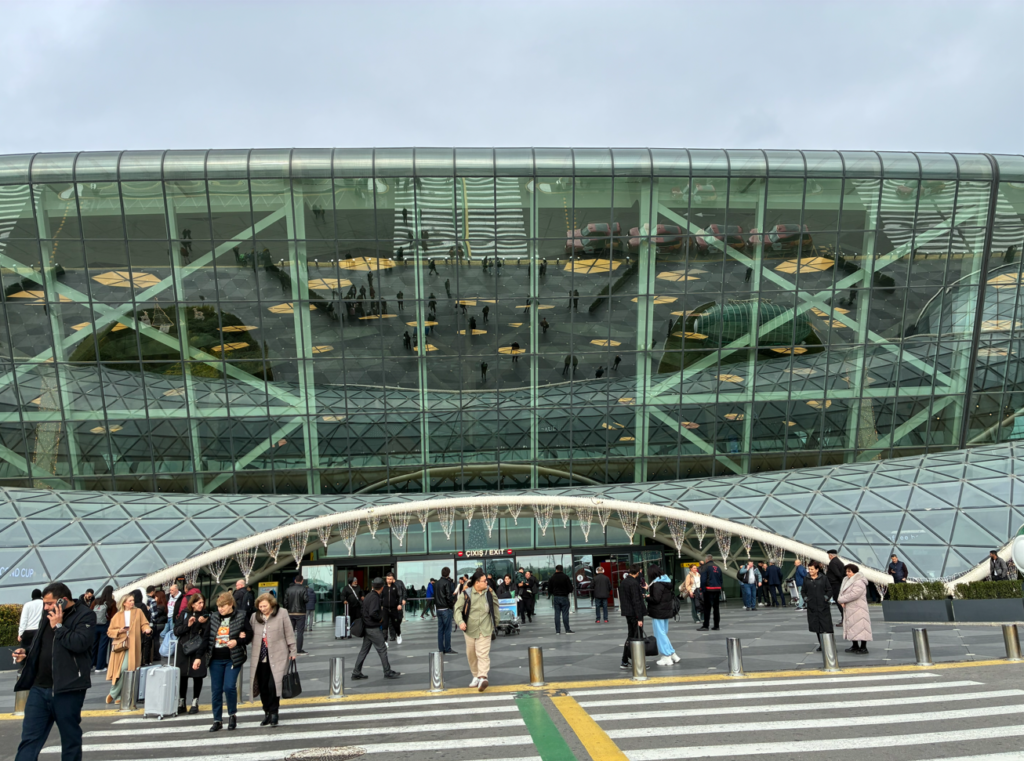 11:40→12:50バクー空港着。バクーの空港はイスラエルに入る時に一度、トランジットで利用したので2度目ですが、アゼルバイジャンへの入国は初めてです。Visaが必要な国のため、事前にe-Visaを取得済みだったので入国は簡単でした。色々質問あるかと想定してましたが、ジョージアから来たの?→Yesの1問だけでした。お洒落なバクー空港。