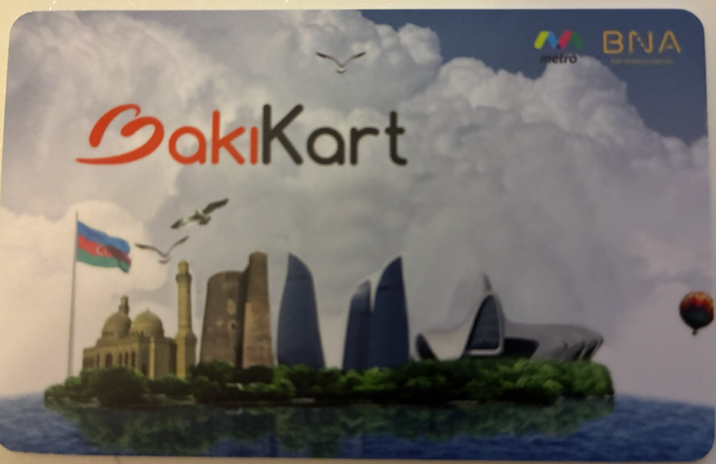 空港からバクー市街へは空港バスを使ってみます。イスタンブールと同じような感じでバクーカード(BakiKart)を作りました。現金乗車NGでこのカードが必須。このカードで空港バス以外も地下鉄や市バスでも使えるようなので便利カード。カード作成に2AZN(180円相当)、空港→バクー市街が1.5AZNなので安い。