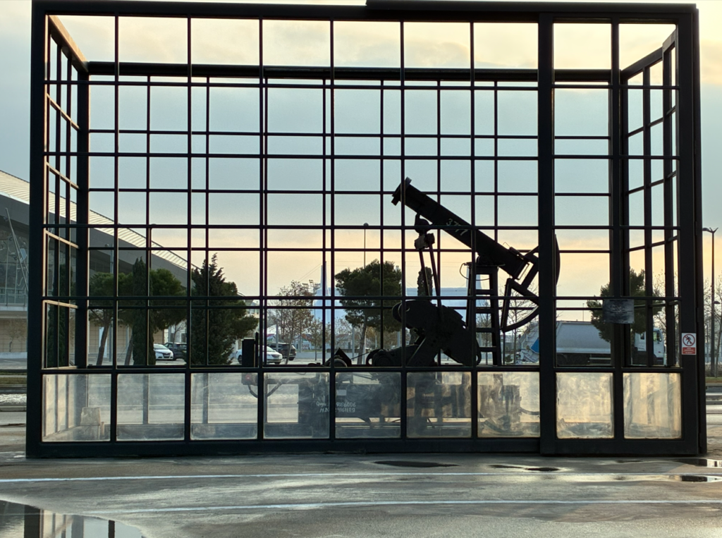「ポンプジャック(油井ポンプ)」と呼ばれる地中から原油を汲み上げる装置を見学。実際に動いています。映画アルマゲドンの最初の海での油田採掘シーンを思い出しました。