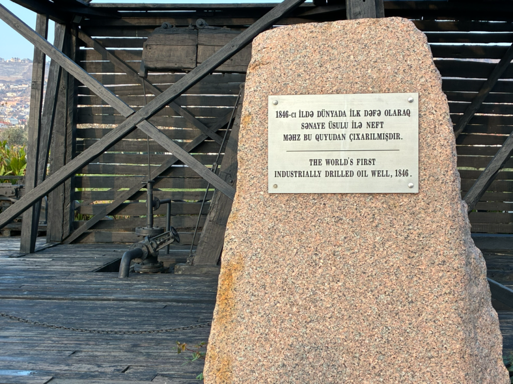 まず最初は、アゼルバイジャン石油産業の象徴的スポットへ。「世界最初の産業的油井(1846)」の記念碑。説明を聞くまで知りませんでしたが、近代石油産業はバクーから始まったとも言われていて、アメリカ(ペンシルベニア)より13年早かったそうです。