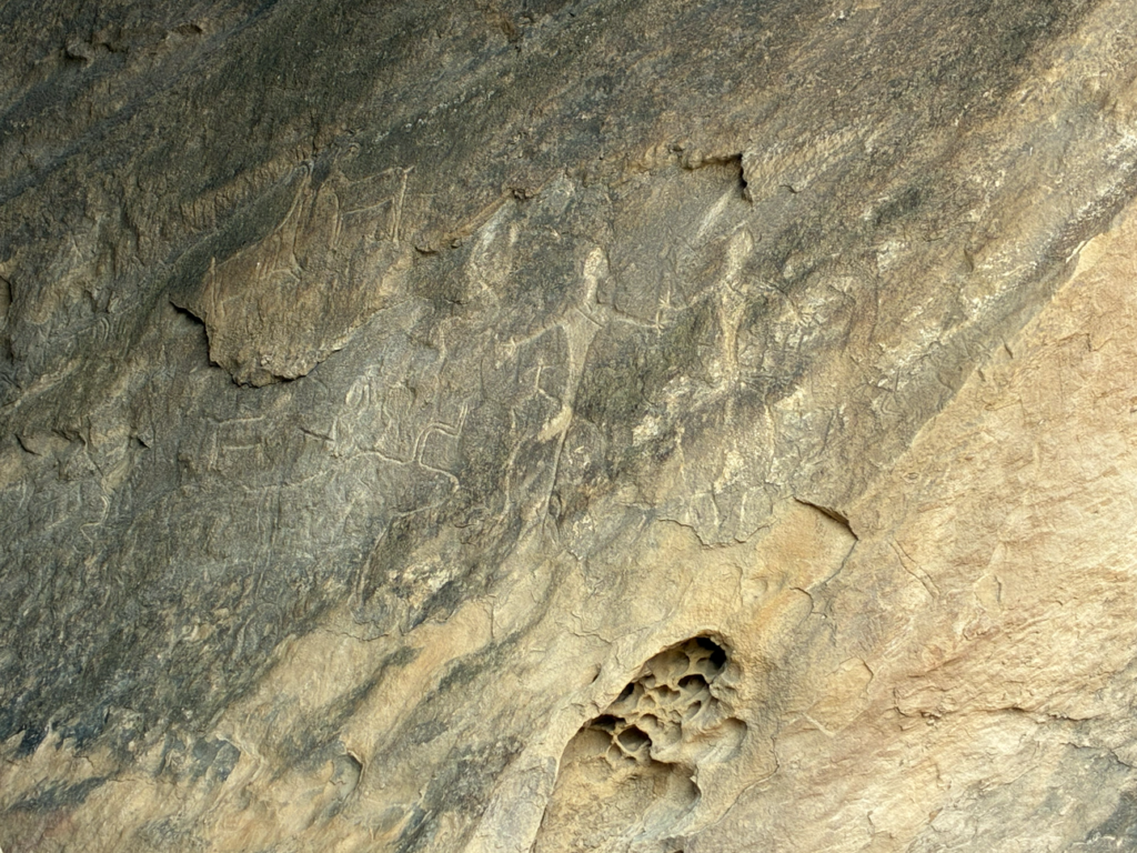 何千年も昔に書かれた岩絵(ペトログリフ)だと思って見ると、色々と感じる物がありました。はるか昔の異国ですが、連綿と続く人の営みが確かにあったんだなぁ。