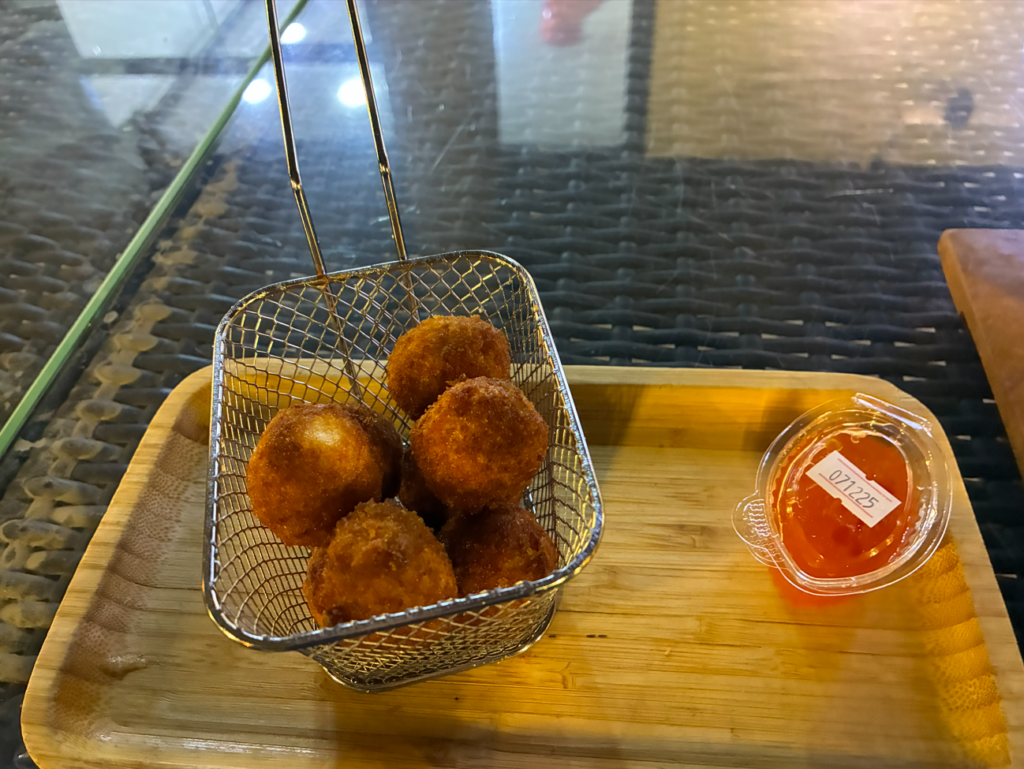 ポテトボール(Potato Balls)&アゼルバイジャン式シャウルマ(Shaurma)。オープンテラスでとてもローカル感あり、大満足。