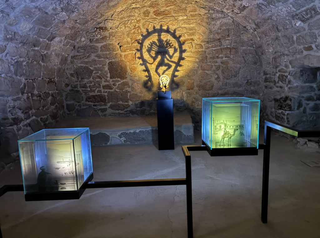 奥に見える影絵のシンボルがゾロアスター教の炎の紋章(Faravahar 風の意匠)で、「火」と「精神の浄化」を象徴するそうです。