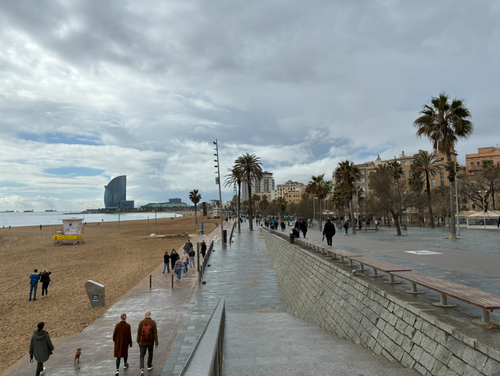 まずはバルセロナで最も有名な地中海ビーチのバルセロネータ・ビーチ(Barceloneta Beach)。