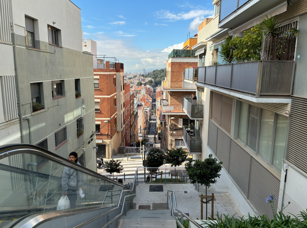 スペイン3日目、本日はガウディDAY。ガウディ建築作品を色々と見て回る予定。まずは、グエル公園(Park Güell)を目指して地下鉄→徒歩で向かいます。結構な傾斜を登ってきましたが、所々にエスカレーターがあるのは助かります。
