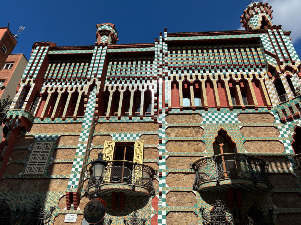お次はガウディの “最初の傑作” と言われる建物カサ・ビセンス(Casa Vicens)。緑と白の市松模様タイルが特徴的。