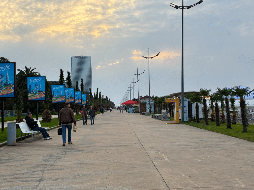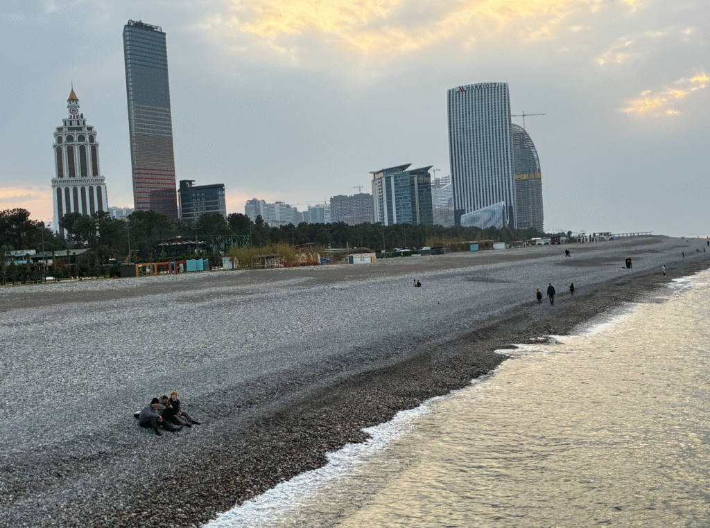 バトゥミのビーチは砂ではなく玉石(Pebbles)。夏はめちゃくちゃ人気で、海水浴・サイクリング・ランニングなどで大賑わいだそうです。この時期は、鴨川沿いみたく、カップルが等間隔で座ってたりしてます。