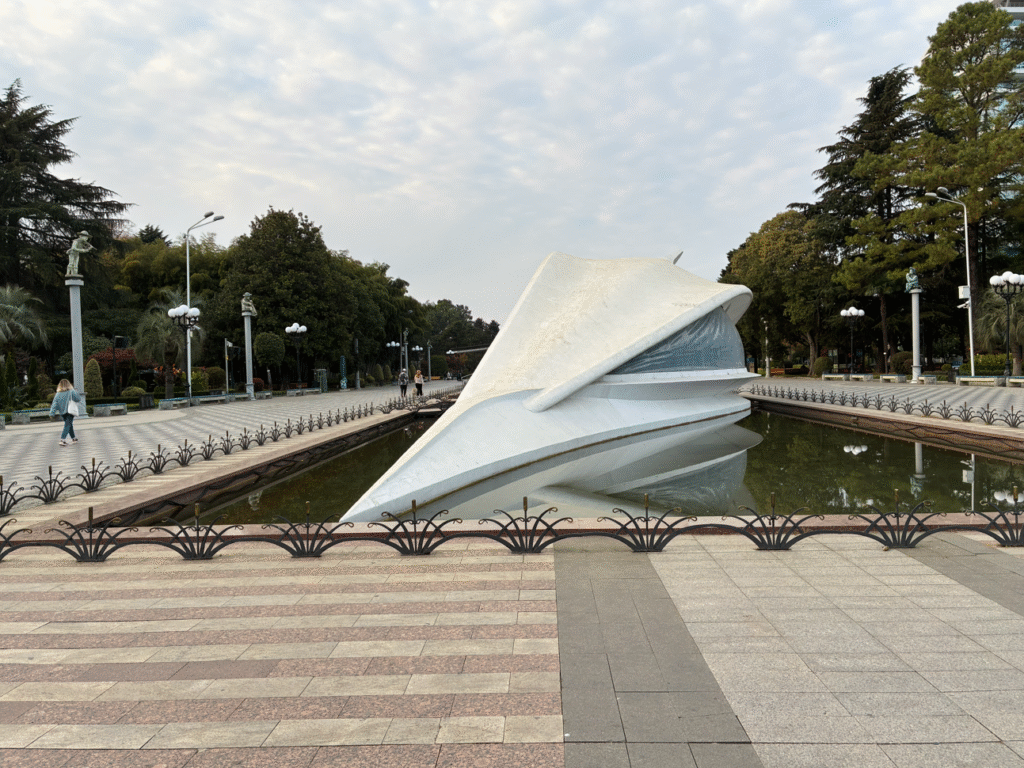 バトゥミはヨーロッパの現代建築家を多く招いて街を再開発しており、この手のモニュメントがいくつもあります。見て歩くだけでも楽しい。貝っぽいけど、何のモニュメントかは不明(笑)。