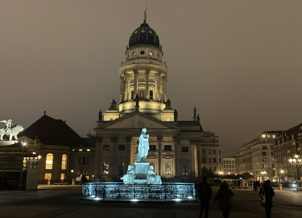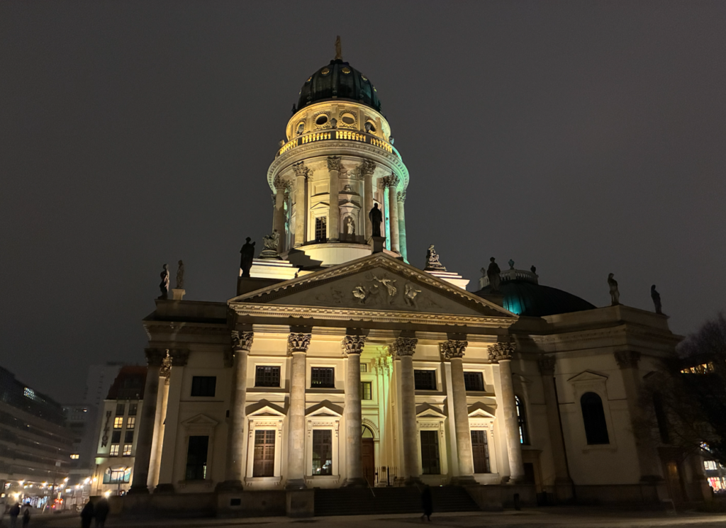 すっかり日が落ちたのでディナーに街ブラしていると何やら、いかつい建物を発見。調べてみるとコンツェルトハウス・ベルリン(Konzerthaus Berlin)、フランス大聖堂(Französischer Dom)、ドイツ大聖堂(Deutscher Dom)。ライトアップでキレイ。明日、時間があれば明るい時間に来てみようと思います。