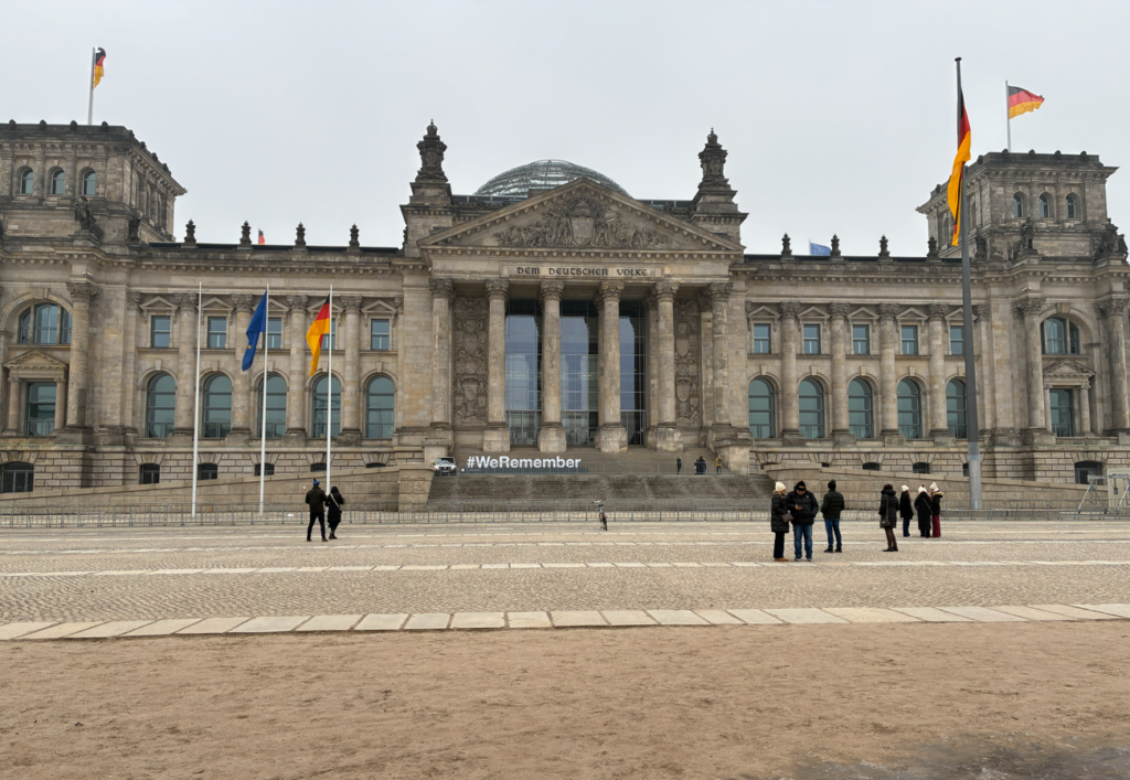 階段前の「#WeRemember」=ホロコースト追悼・記憶継承のメッセージ。ドイツを感じます。