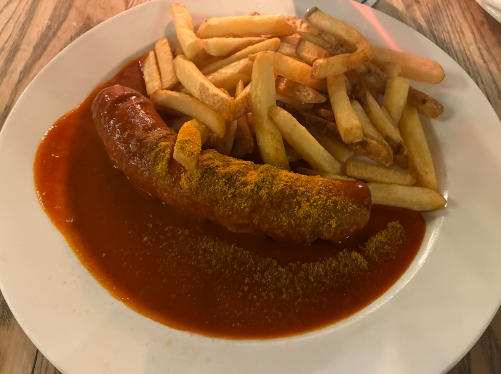 Berlin CURRYWURST。ソーセージ+フライドポテト。ビールにベストマッチ。