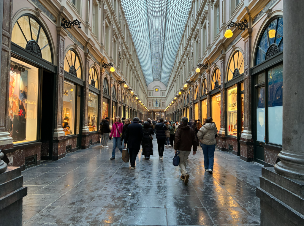 お次は、サンテュベール王立ギャラリー(Galeries Royales Saint-Hubert)。1847年完成のヨーロッパ最古級の屋根付きアーケード。