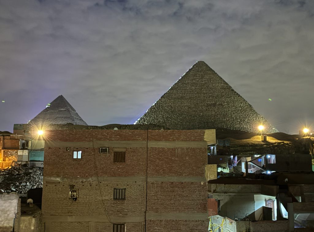 ピラミッドが見える宿にしました。夜景がピラミッド!