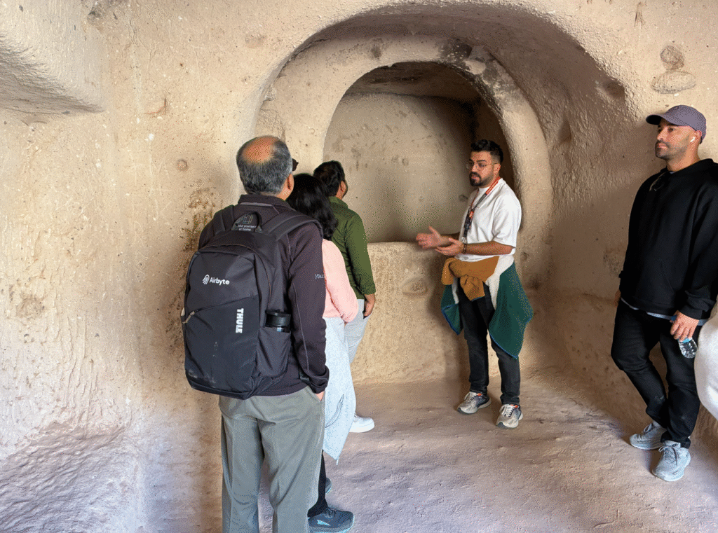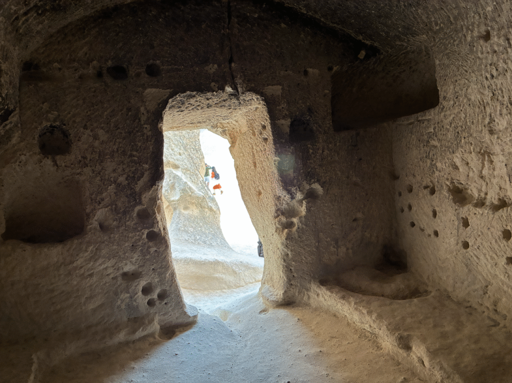 カッパドキアは古代からワイン生産地で、ここがワイナリー(Wine House)だったそうです。丸く彫られた凹みは、葡萄を踏み潰すための場所で、下の穴に果汁が流れ込む設計になっているとか。