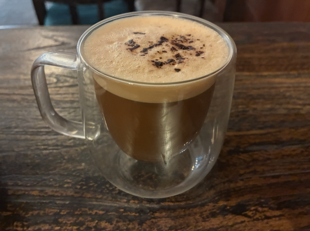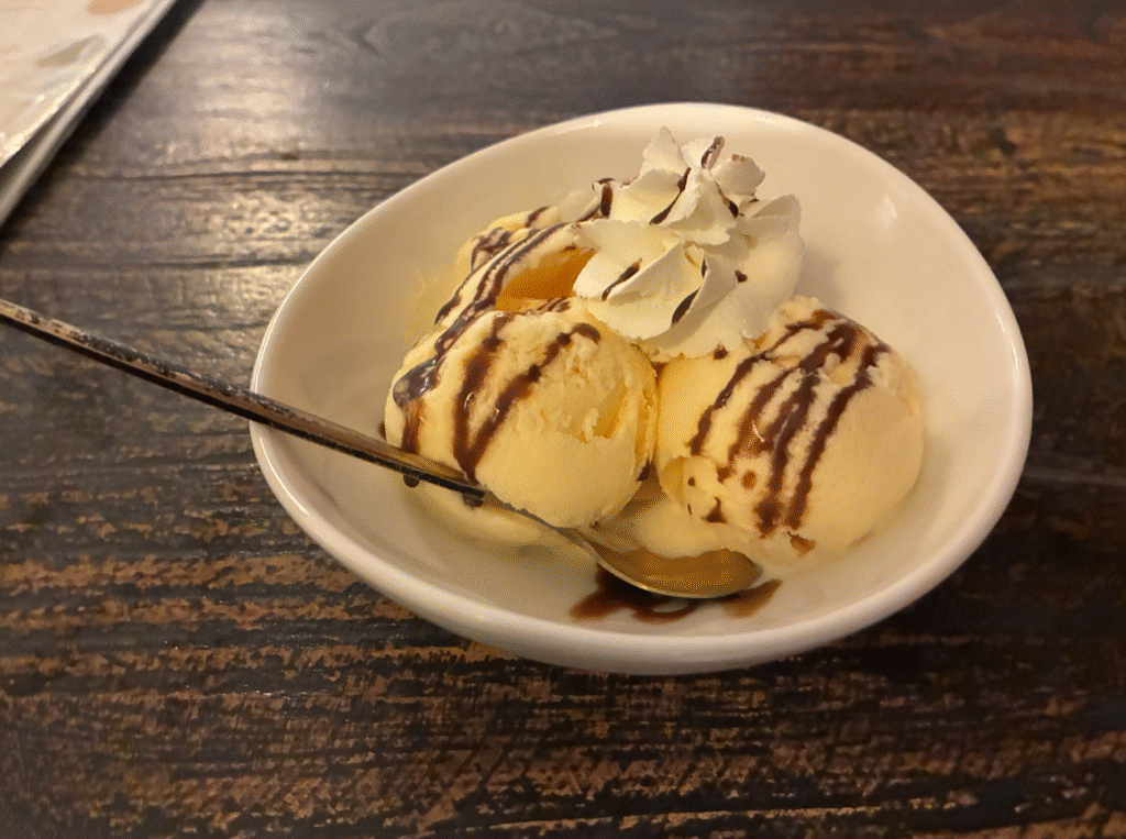 城壁を一周し、歩数も個人ノルマの8000歩を越えたので休憩。Anods Cafe Galle。Googleマップ☆4.9。落ち着いた雰囲気の店でした。暑かったのでアイスクリームとカプチーノ。カプチーノは絶品。
