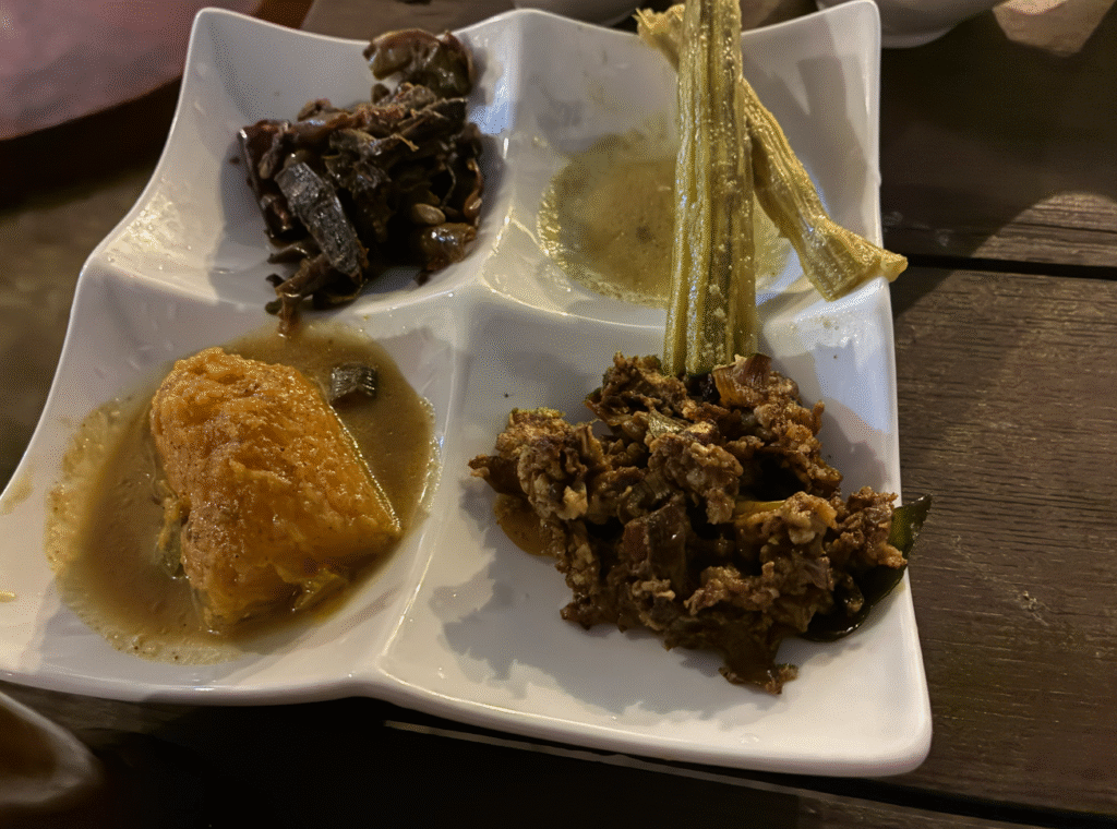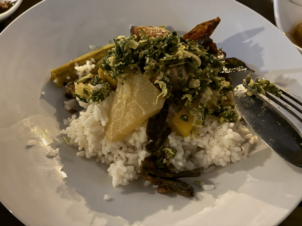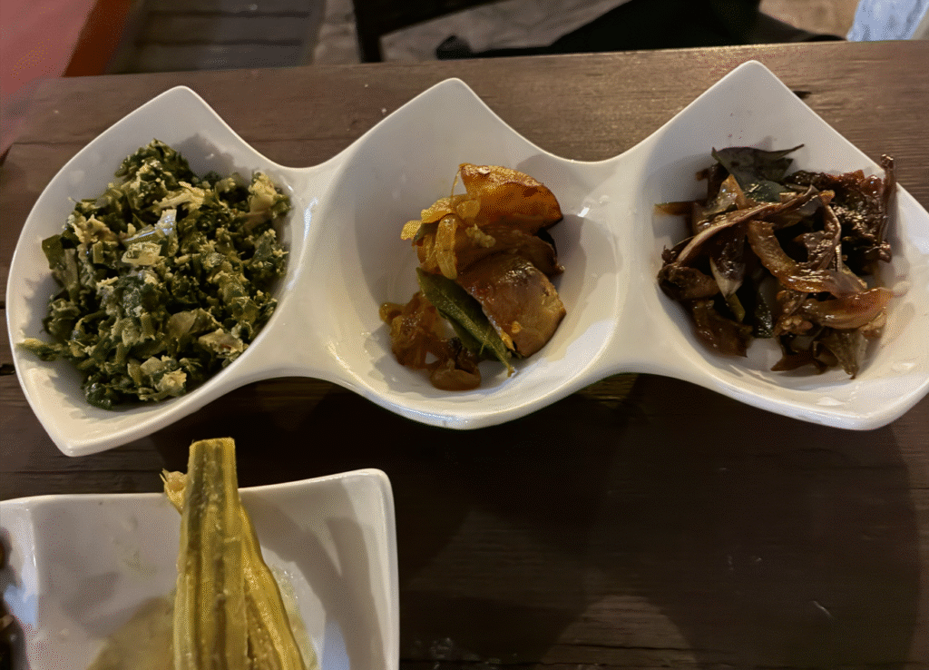 ゴールは1泊で明日には移動してしまうので、全部やらなきゃと言うことで、ディナーはゴール旧市街の人気店、Lucky Fort Restaurantの名物「スリランカン・ライス&カレー(Rice and Curry)」をいただきます。