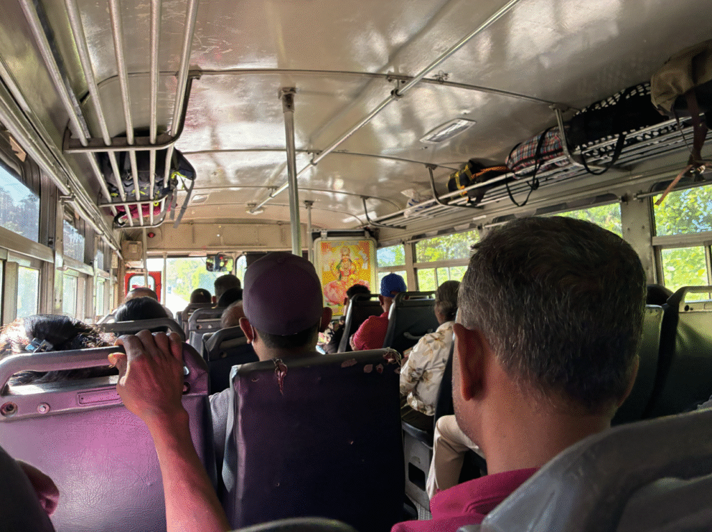 エッラからゴールへの移動方法は色々とあるのですが今回はバスを選択。7:10エッラ発のバスで昼過ぎにゴールへ到着予定。約130〜140km(実際はウネウネ道なので200kmとか)なので長距離バスになると思いますが、色々な所で客を拾い、下ろしていくバスで、6~8時間の走行時間。価格はなんと800ルピー(約400円相当)。めっちゃ安いですよね。