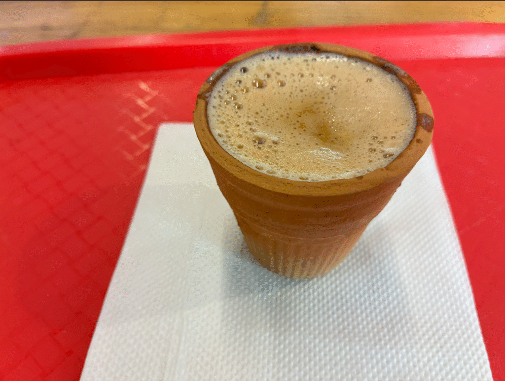 一仕事したので、インドらしくチャイを飲み休憩。50INR(85円相当)