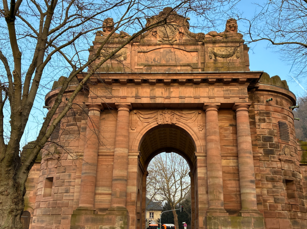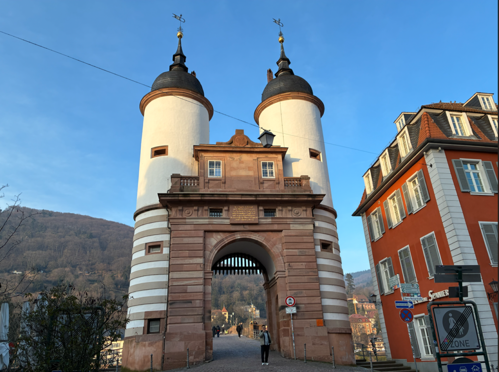 続いては、カール・テオドール橋(Karl-Theodor-Brücke)。白い双塔の門(ブリュッケ門)が印象的。