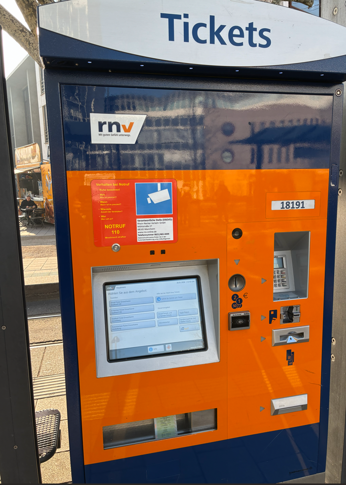 出発に遅延はあったが、ほぼ予定通りの時間13:40にハイデルベルク駅に到着。早速、宿に向かうべくトラム(路上電車)に飛び乗るも、車内にチケットの購入機器が無い。やばい。このままだと無銭乗車になると慌てて飛び降りてセーフ。プラハ(チェコ)方式で列車内の購入でOKかと思ってたが、ハイデルベルクのトラムは事前に駅でチケット購入方式の模様。先入観って怖いですね。。。気をつけよう(笑)。