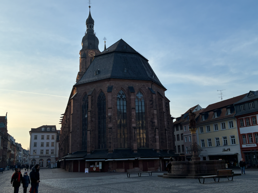 ハイデルベルク旧市街のど真ん中=マルクト広場(Marktplatz)の象徴、聖霊教会(Heiliggeistkirche)。