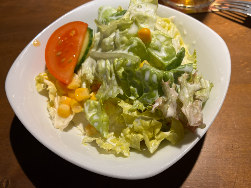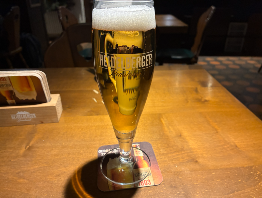 ハイデルベルクのローカルビールHeidelberger Brauerei&付け合わせサラダ。最近、野菜不足だったから嬉しい。ビールは軽め・苦味控えめで食事にマッチ。