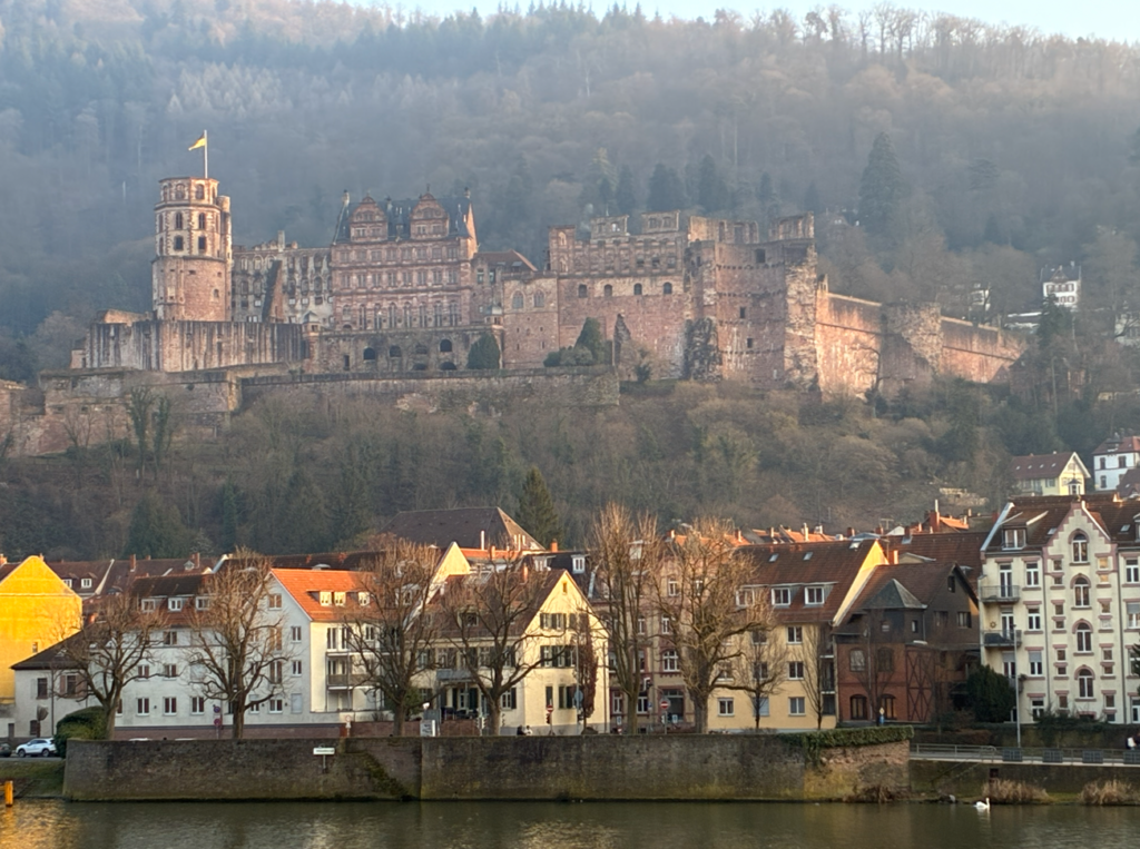 予定通りに旧市街にある宿に辿り着けたので、早速街歩きを開始。奥に見えているのが目当てのハイデルベルク城。