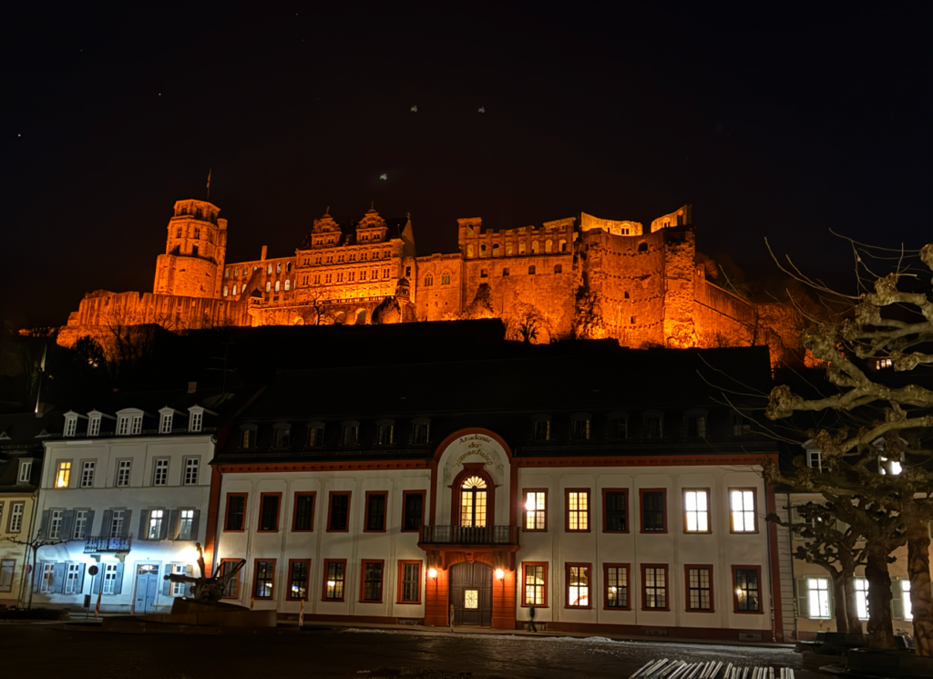 ライトアップされた夜のハイデルベルク城もいいですね。明日は、ドイツ4都市目になるフランクフルトへ移動していきます。
