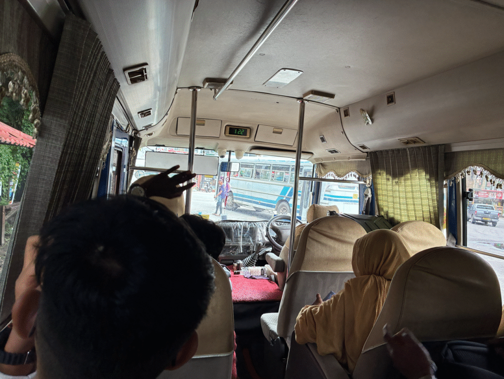 コロンボの空港から空港バスを利用してコロンボ・フォート駅を目指します。乗り合いバスのようで、満席まで客を待つので補助席までギュウギュウっす。