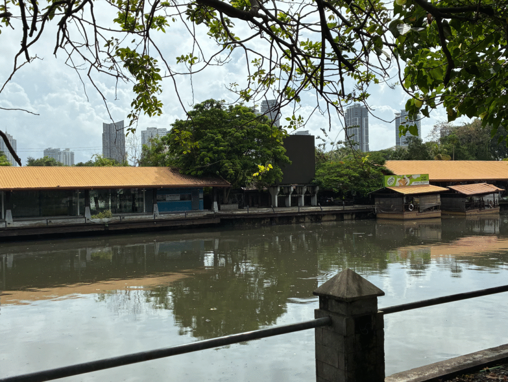 コロンボ・フォート駅まで行くと思ってたら1kmほど手前で降ろされ、仕方なく徒歩で駅まで移動。さすが首都。遠くには高層ビルが見えます。が、今日はコロンボはスルー。