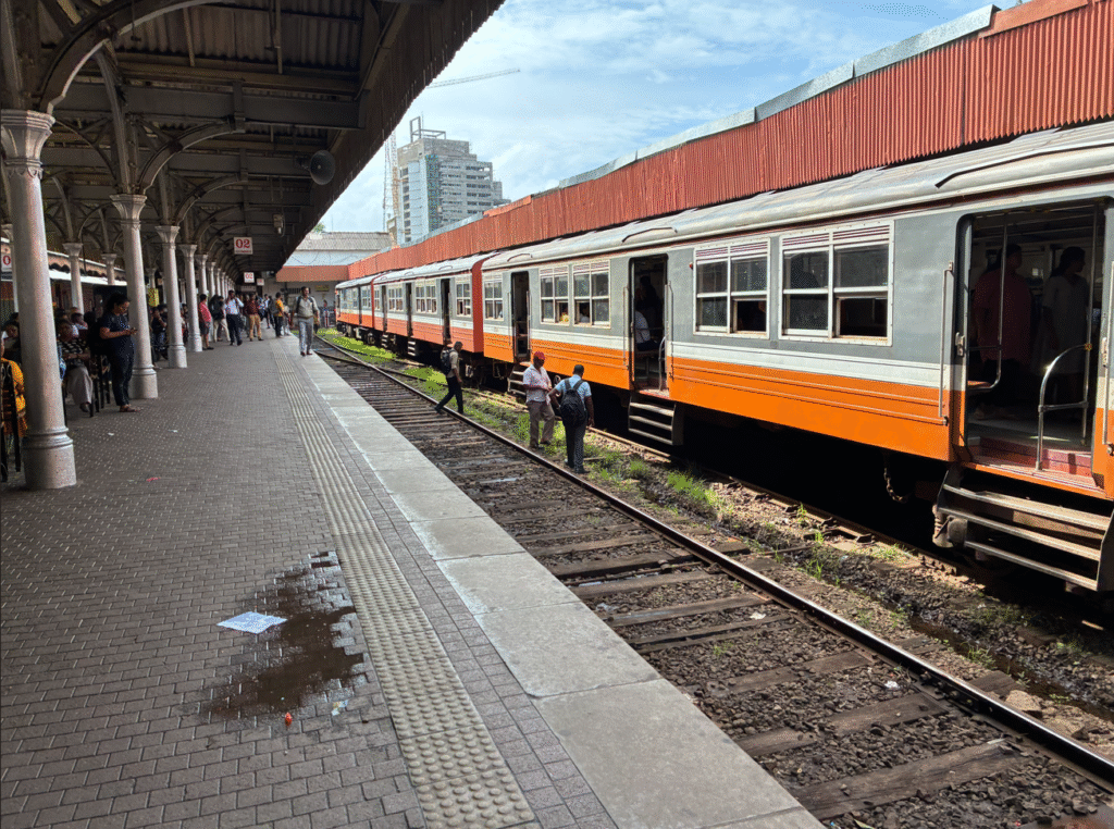 コロンボ駅到着。線路内に降りて乗車していく姿は、アジアを感じます。