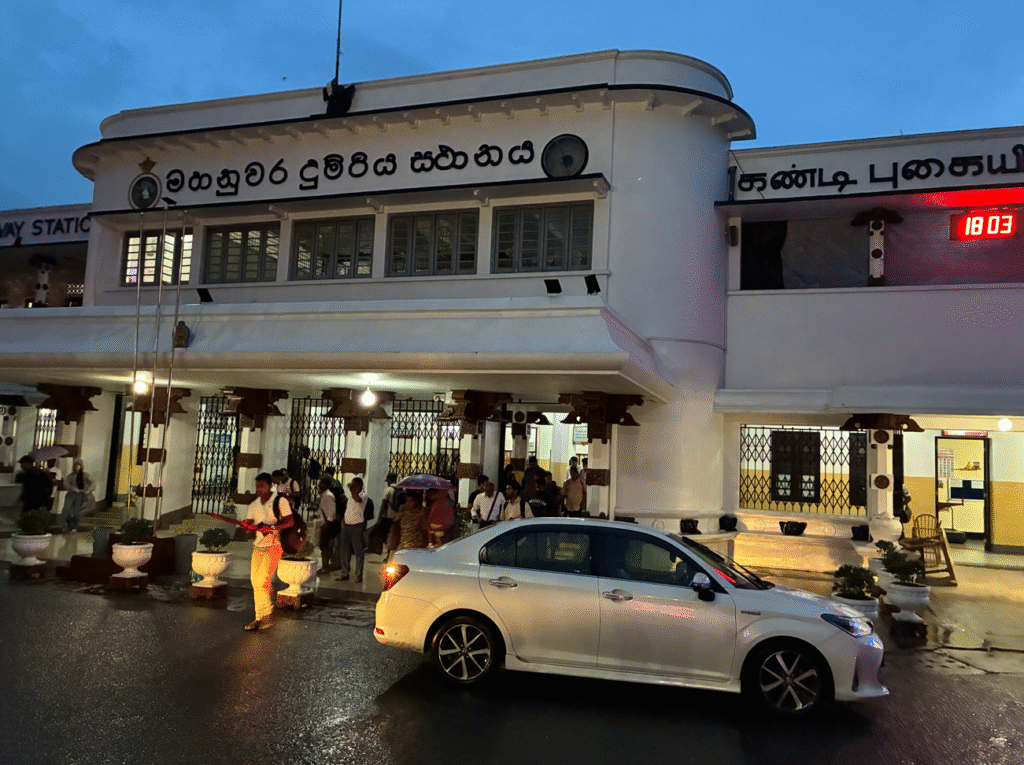 キャンディ駅に到着です。チケットでは18:15到着予定でしたが、時計が18:03になってますね。列車が予定時間よりも早く着くこともあるんですね。