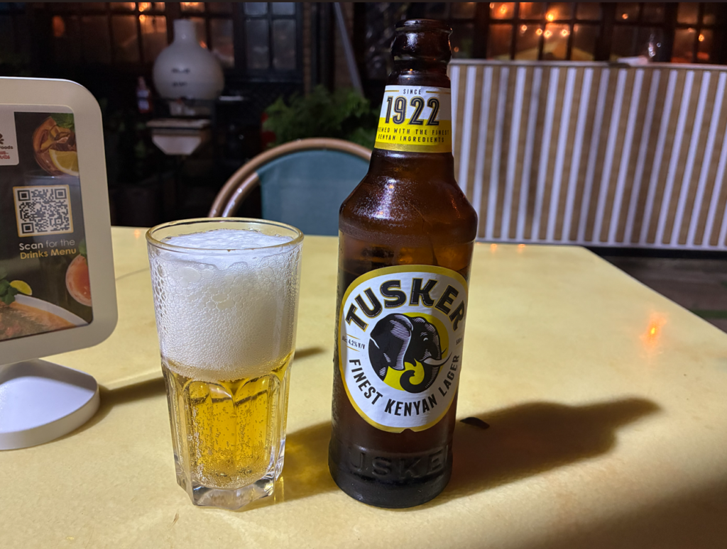 やっとイスラムエリアを抜けて、キリスト教多数のケニアに入ったので、早速ビール。ケニア定番Tusker。久しぶりのビール!美味い。