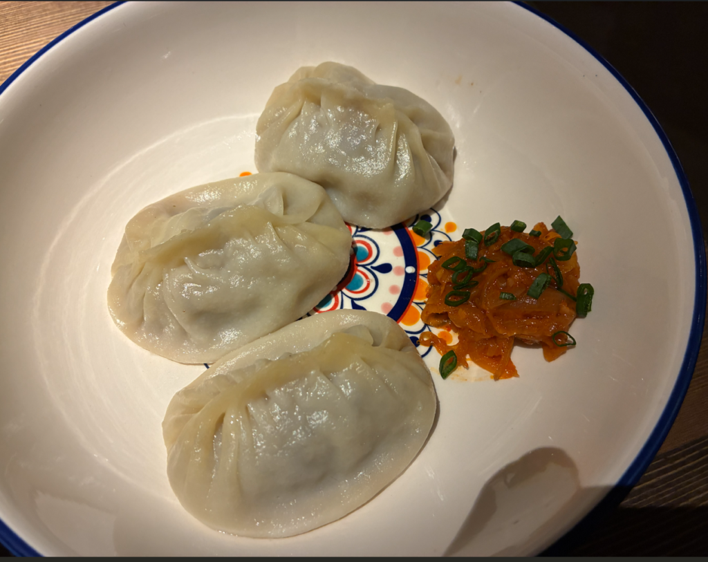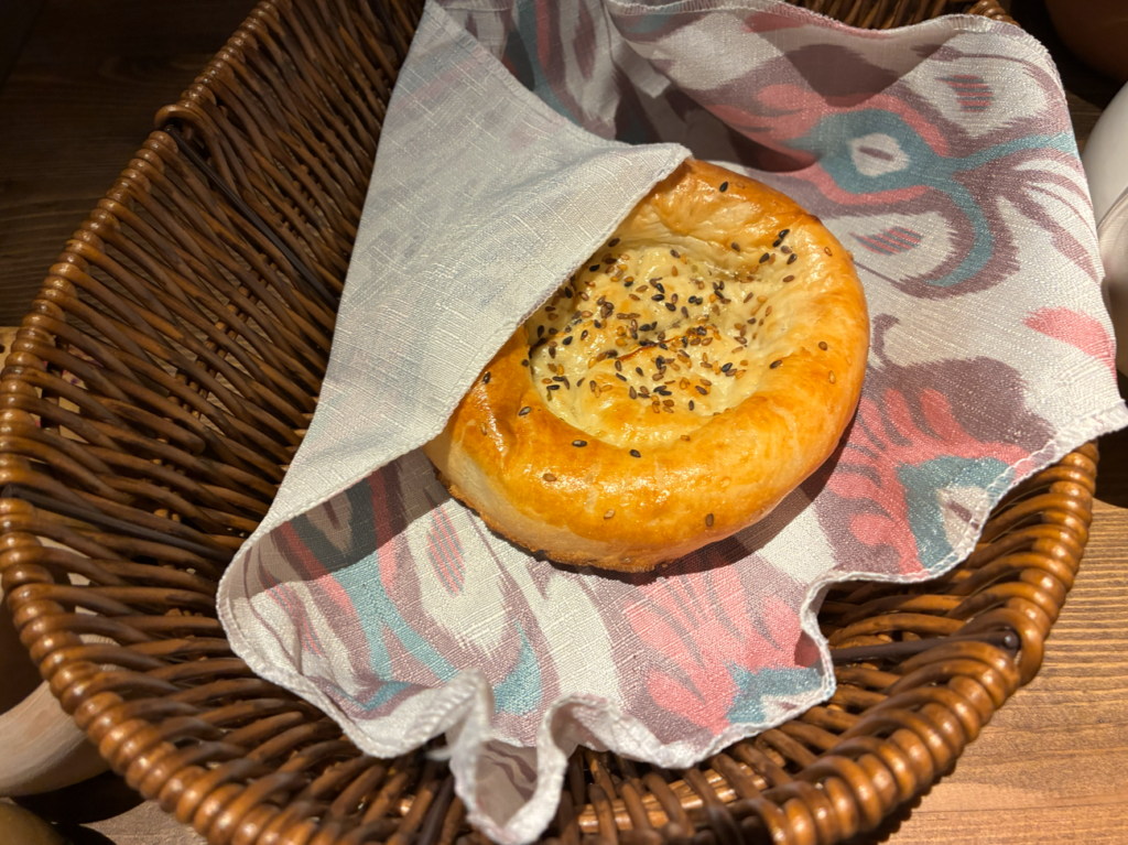 タンドゥル・グシュ(Tandir Gusht)。タンドール窯で焼いた肉で外カリ中ジューシー。マンティ(牛肉)、けっこう大きくて食べ応え満点の餃子もどき。